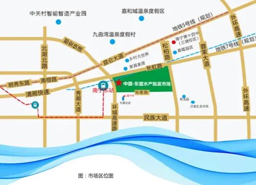 中国-东盟水产批发市场是以水产海鲜批发交易为主,配套果蔬、粮油、海味干货、餐饮酒店、物流仓储、网商平台等经营业态于一体的综合批发市场,将打造成为立足南宁,服务广西,辐射全国,面向东盟的大型水产品批发交易中心。